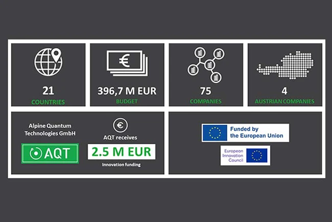 The European Innovation Council (EIC-Accelerator) awards AQT grants of up to EUR 2.5 million in combination with equity investments through the EIC Fund of EUR 0.5 to 15 million, or more.
