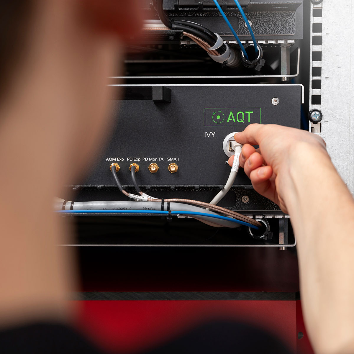 This module features an evacuated Fabry–Pérot filter cavity, a camera for remote mode monitoring, and single-mode polarisation-maintaining fiber connectors for the input and output beams. An optical set-up for fiber noise cancellation is available as an add-on, without locking electronics. Furthermore, the module has space for housing a tapered amplifier supplied by a third party laser vendor, making IVY suitable for high power applications.